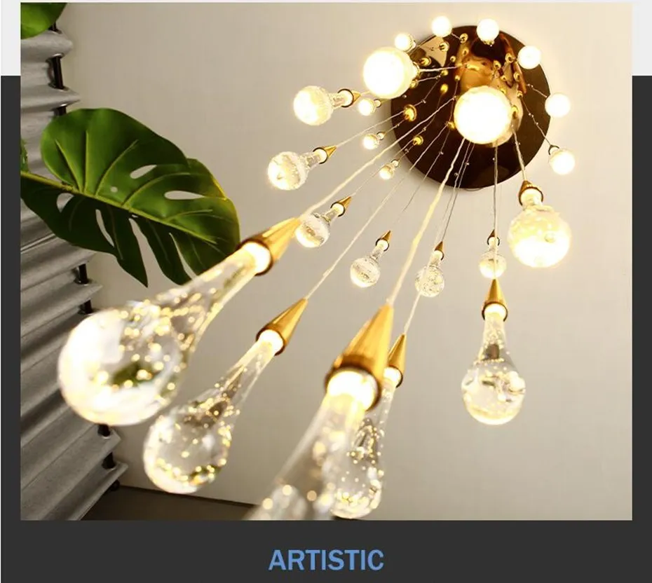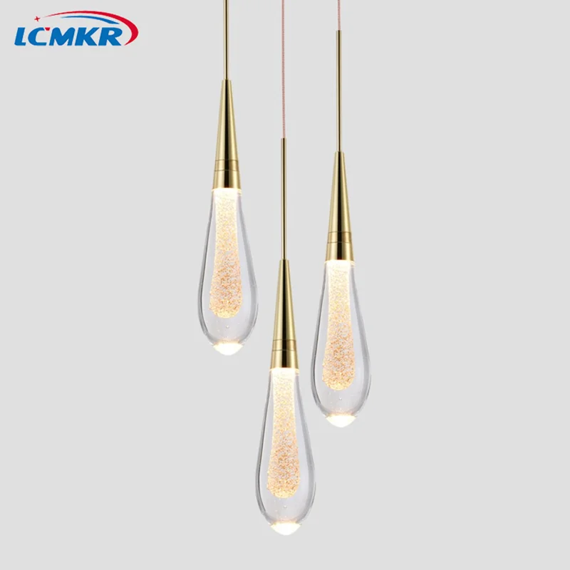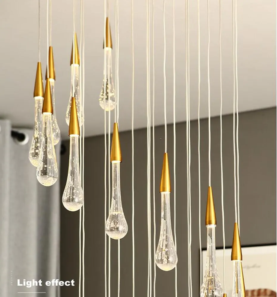 Современные хрустальные светодиодные подвесные светильники в форме капли воды, лампа для спальни, столовой, бара, подвесной светильник для лестницы, украшение интерьера, подвесные лампы