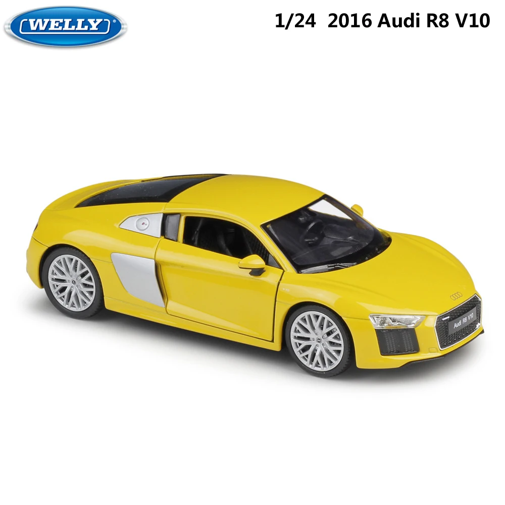 Модель автомобиля WELLY масштаб 1:24, литая машина, игрушки 2016 Audi R8 V10, высокий симулятор, игрушечный автомобиль из металлического сплава для детей, коллекция подарков