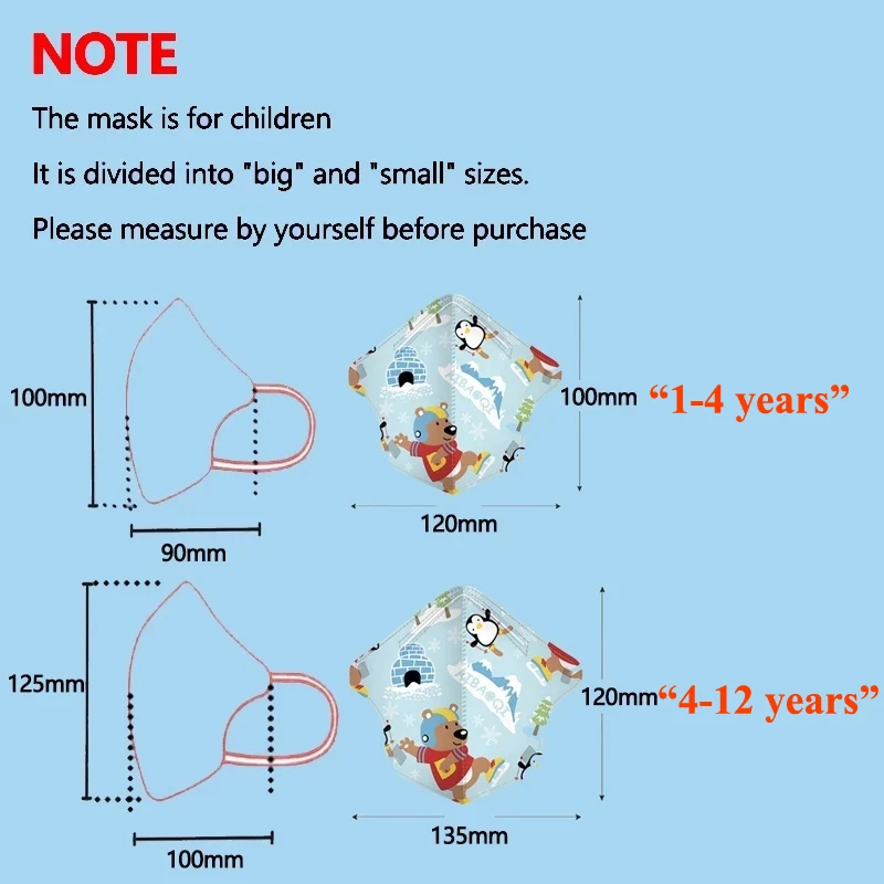 Скорость фильтрации: ≥ 95% (0,075мкм частиц) Размер: 4-12 лет: 125 мм * 100 мм; 1-4 лет: 100 мм * 90 мм
