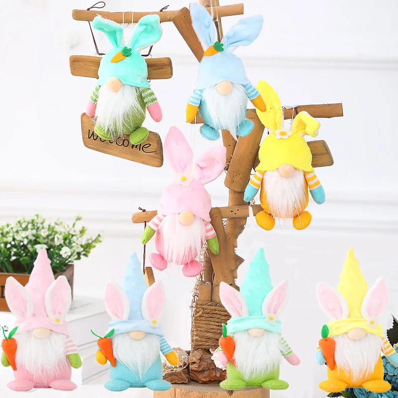 Пасхальный кролик, гном, украшение, Пасхальный кролик, яйцо без лица, плюшевая карликовая кукла, настольные украшения, весенний, пасхальный декор для вечерние, детская игрушка