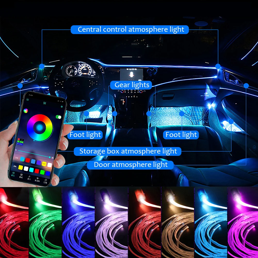 14 в 1 RGB Ambient LED Light Strip, деталь салона автомобиля, неоновая светодиодная волоконно-оптическая приборная панель, атмосфера, декоративные автомобильные аксессуары, 12 В