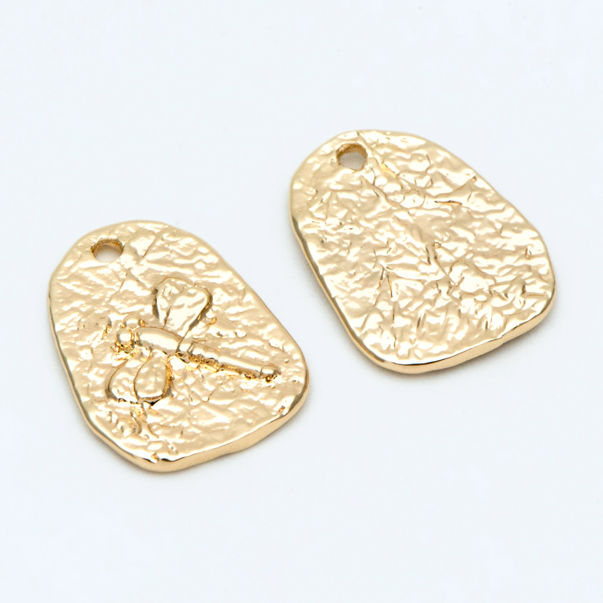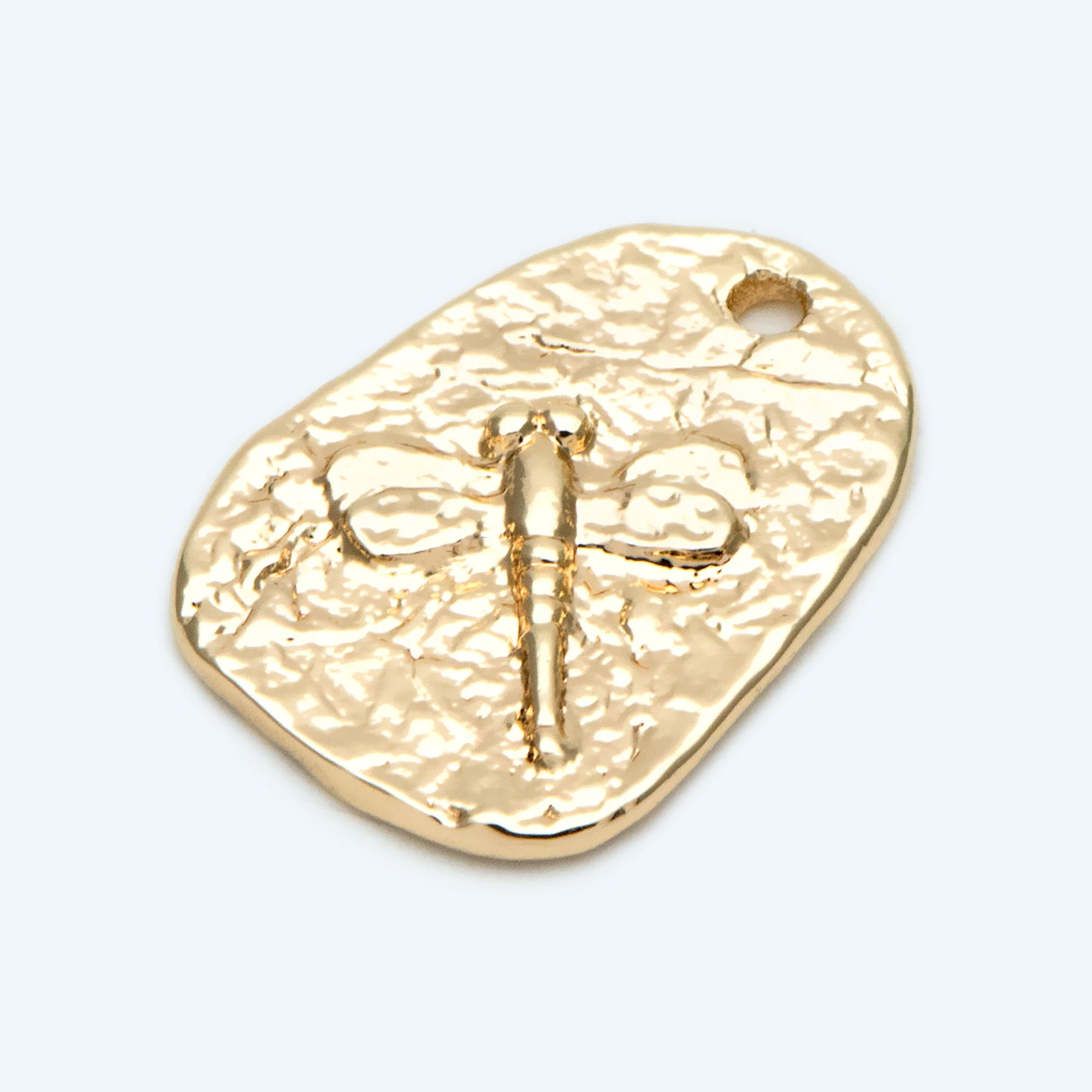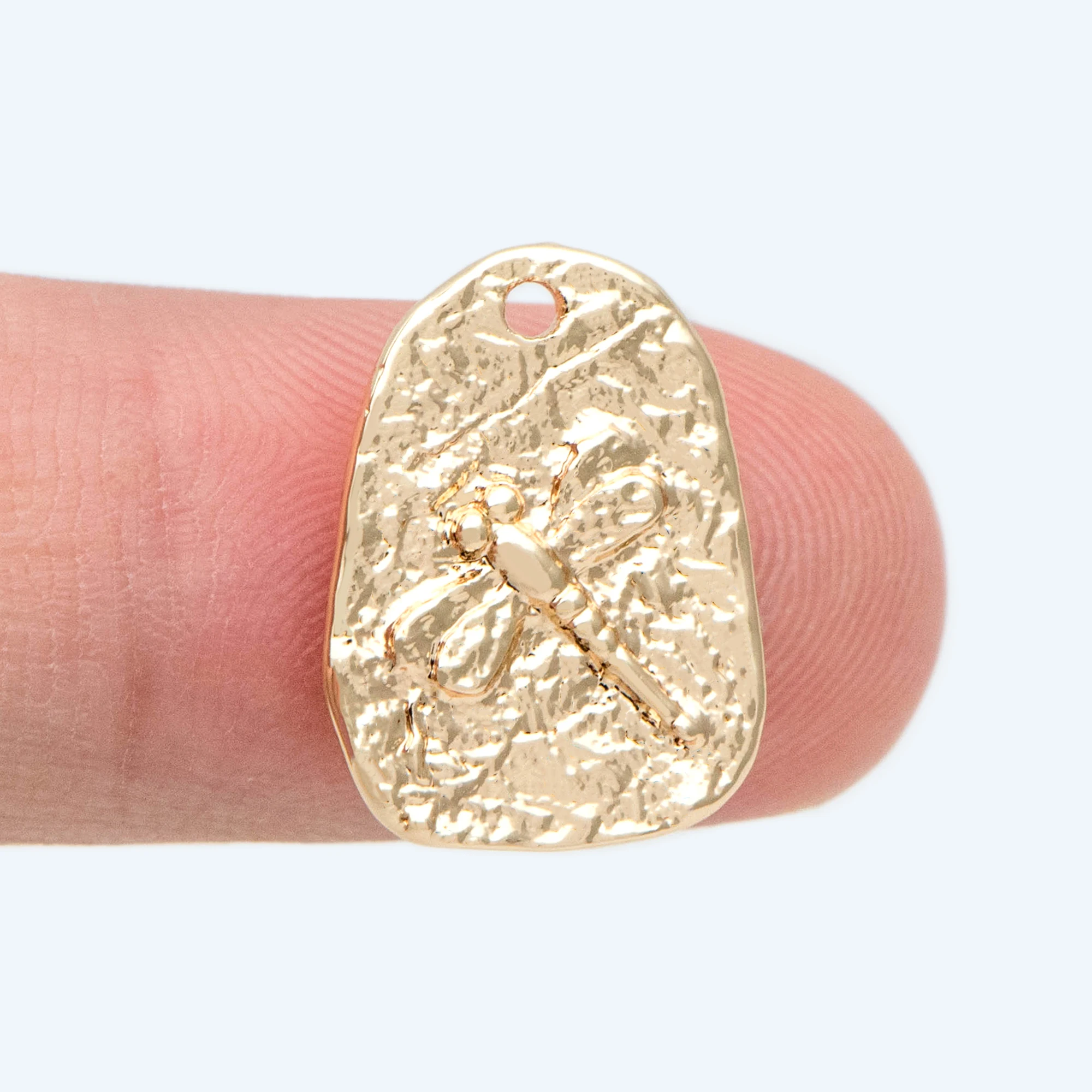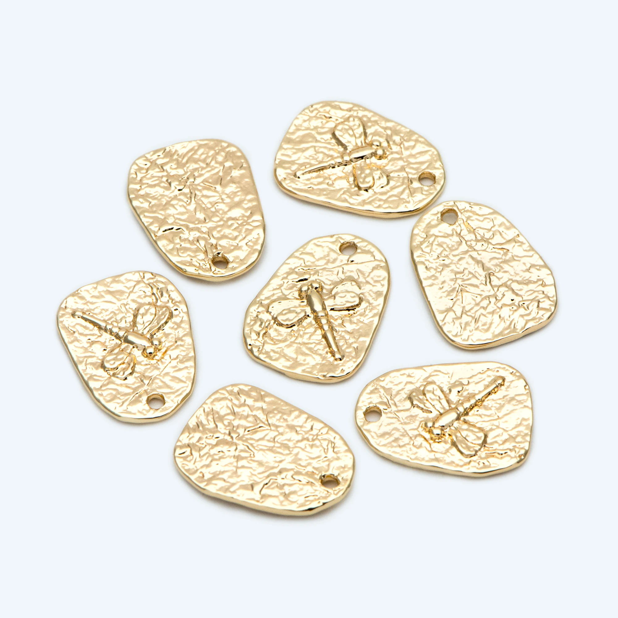 10 шт Fossil подвеска в виде стрекозы, латунные подвески с покрытием из 18-каратного золота (GB-2656)