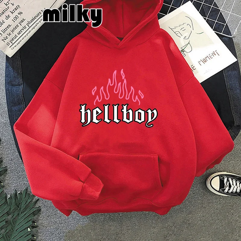 Модная новинка толстовки с капюшоном в стиле Хеллбой пламя женские свитшоты с капюшоном фанаты Лил Пип Харадзюку уличная одежда в стиле хип-хоп женская одежда 2021