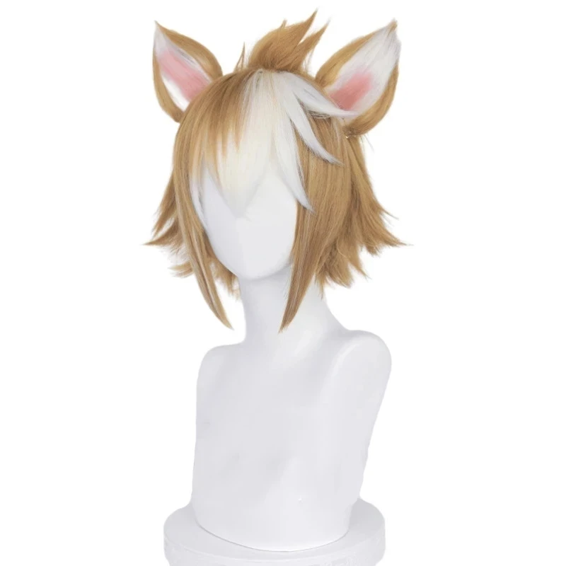 Парик для косплея Gorou, короткий, коричневый, белый, с ушками, из ...