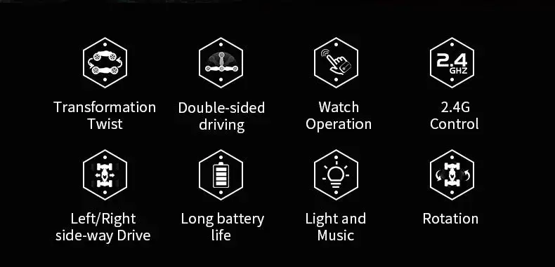 2,4G пульт дистанционного управления, часы дистанционного управления (опционально), USB кабель для зарядки, автомобиль * 1