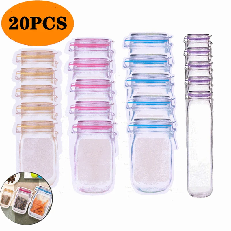 20 шт. Сумки на молнии Mason Jar Многоразовая сумка для хранения закусок герметичные сумки для хранения сэндвичей для путешествий Дети