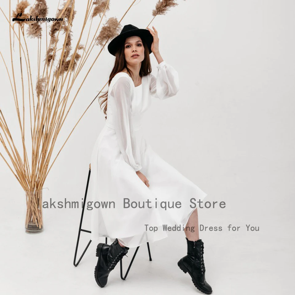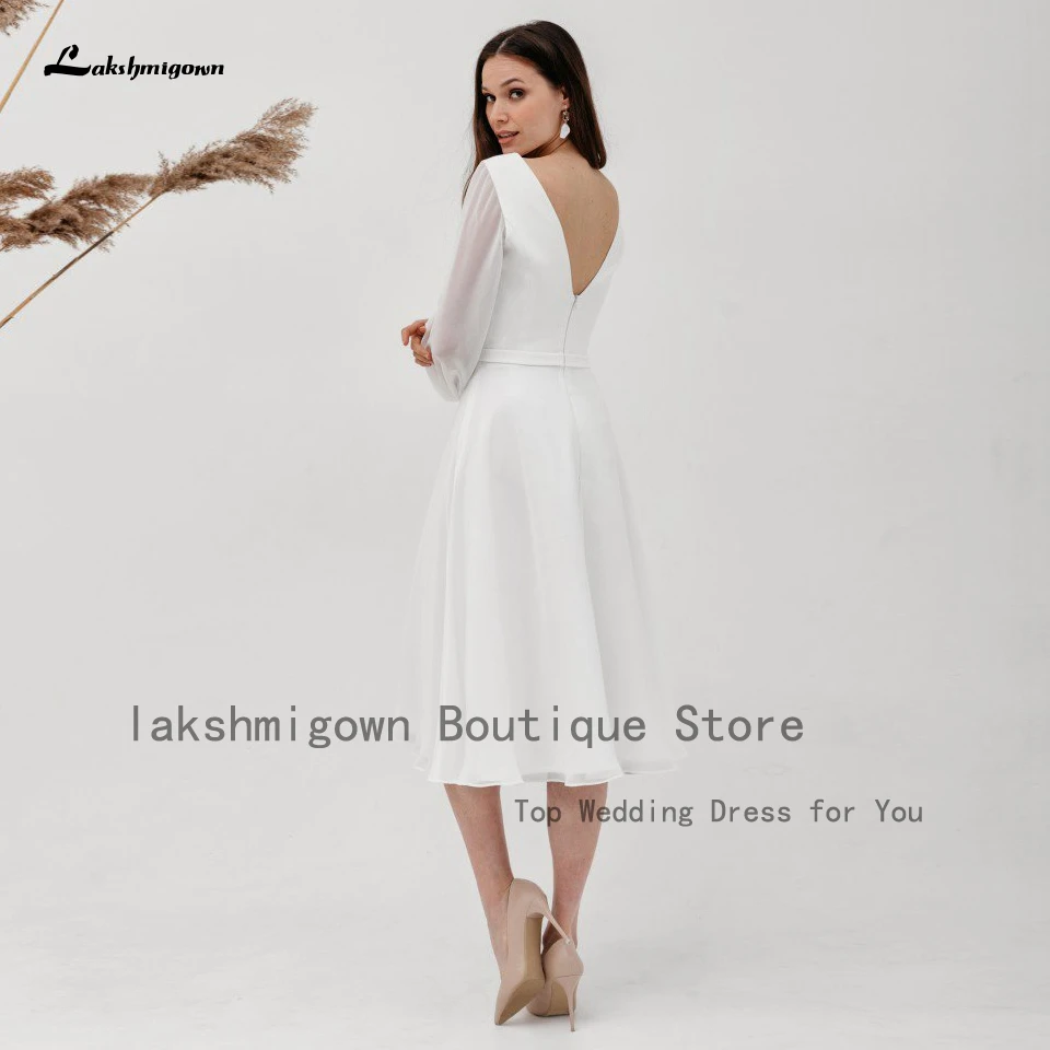 Lakshmigown простое пляжное свадебное платье, короткое 2022 сексуальное Белое Шифоновое летнее свадебное платье с длинным рукавом и открытой спиной