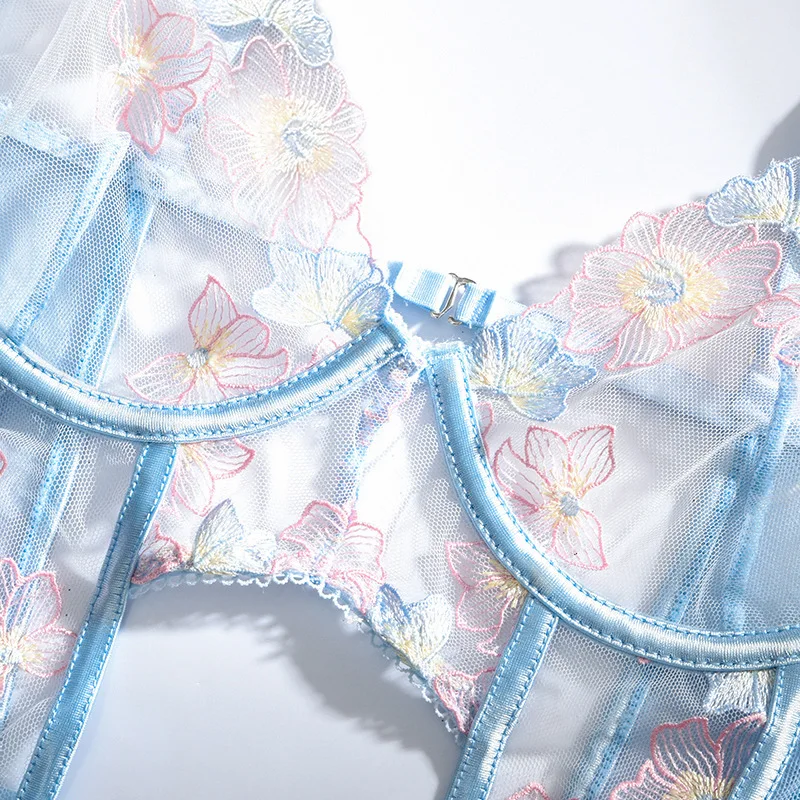 Женское нижнее белье с кружевной вышивкой и сетчатым бюстгальтером