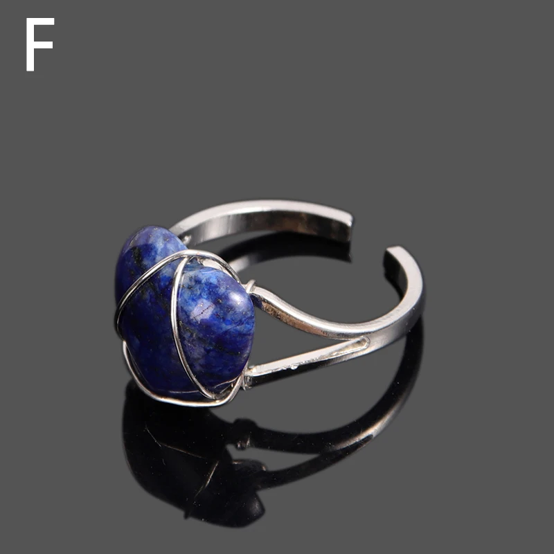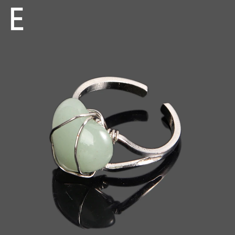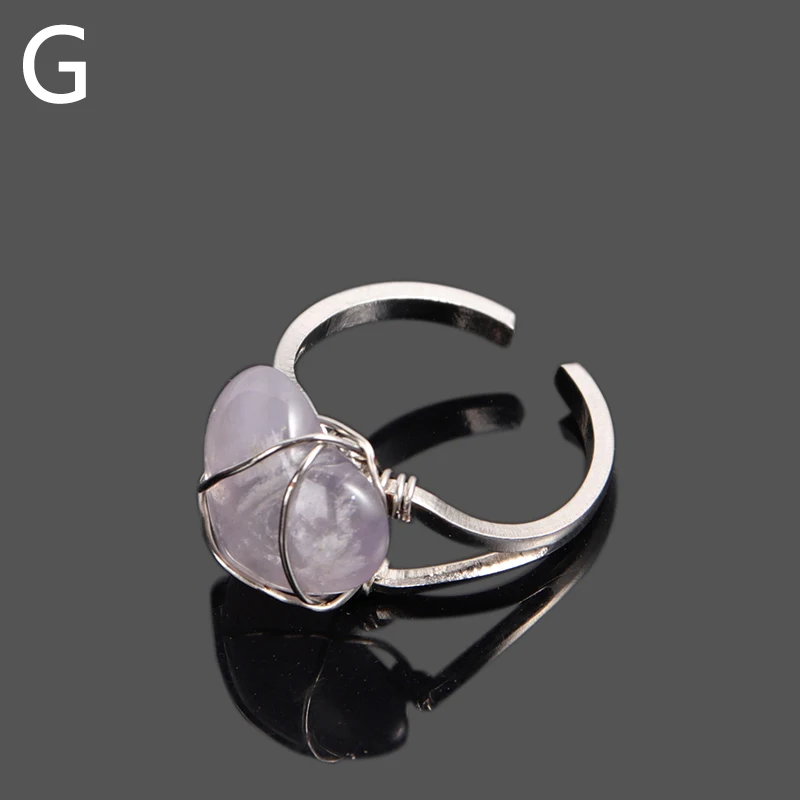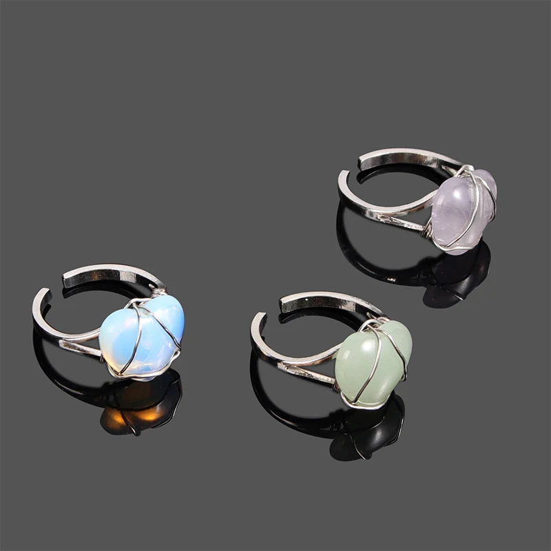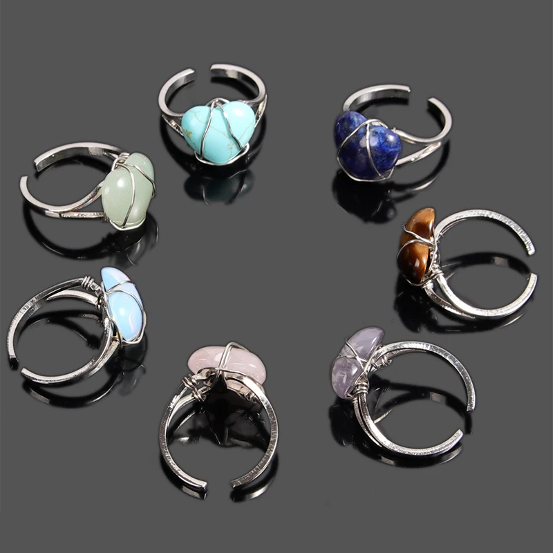 Кольца с натуральным кристаллом, регулируемые, в форме сердца