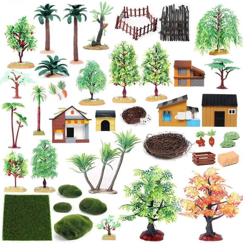 Детское моделирование миниатюрные фермерские животные модель игрушки украшение фермерский дом забор на лужайке гнездо расположение пейзажей Ландшафтный аксессуар