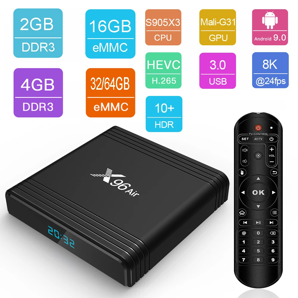 Смарт ТВ-приставка Gotit X96 Air на Android 9,0, ТВ-приставка X96Air на Android, 2 ГБ4 ГБ ОЗУ, 16 ГБ32 ГБ64 Гб ПЗУ, четырехъядерный процессор S905X3, ТВ-приставка
