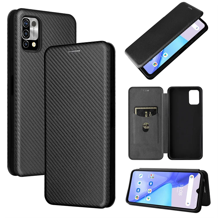 Чехол-книжка для Umidigi A9 Pro, углеродное волокно, Магнитная подс...