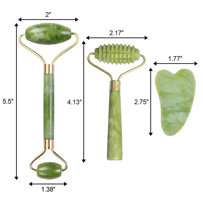 Массажер гуаша с натуральным нефритом, набор из 2 нефритовых валиков для ухода за кожей лица и тела, скребок для гуаши