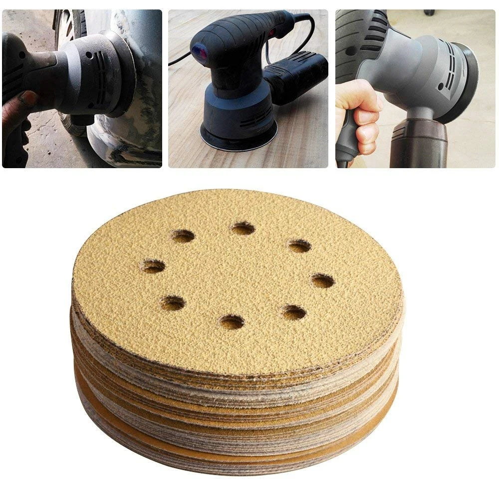 25 шт. 5 дюймов 125 мм 8 отверстий наждачная бумага круглая форма шлифовальные диски крючок и петля наждачная бумага полировальный лист фотобумага