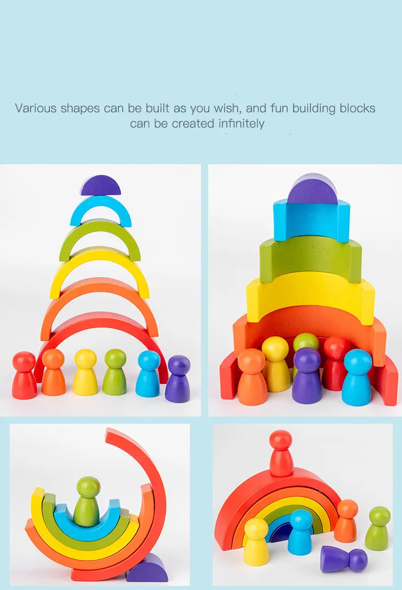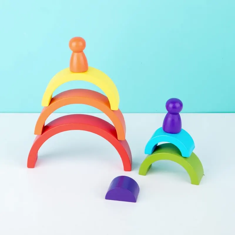 Набор строительных блоков Монтессори, полукруглая Радужная Арка моста, злодеи, деревянные игрушки, Детское обучение, цветные Когнитивные Блоки, детская игрушка