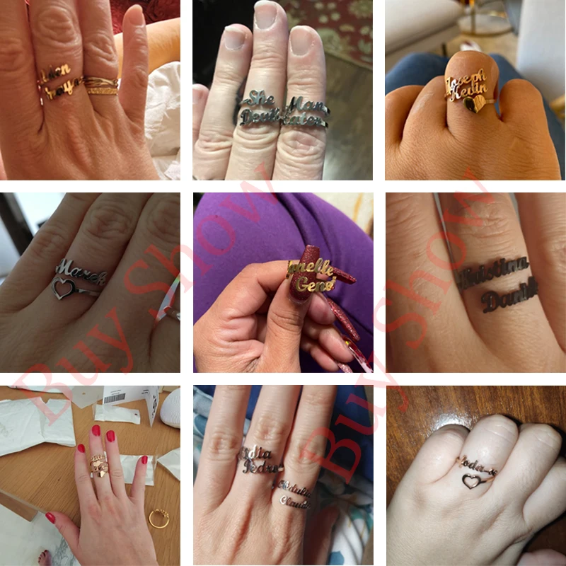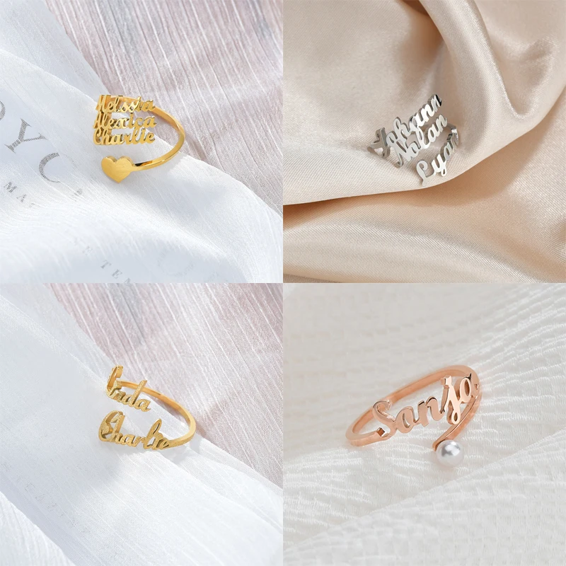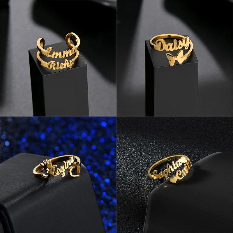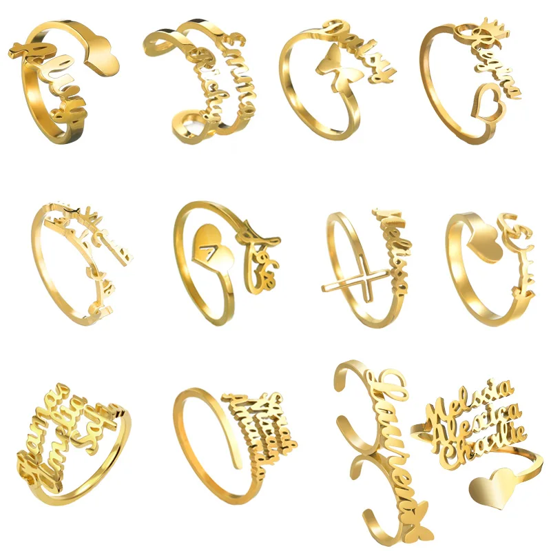 Индивидуальное индивидуальное двойное кольцо с именем из нержавеющей стали регулируемая табличка с буквами женские кольца для свадьбы ювелирные изделия подарок