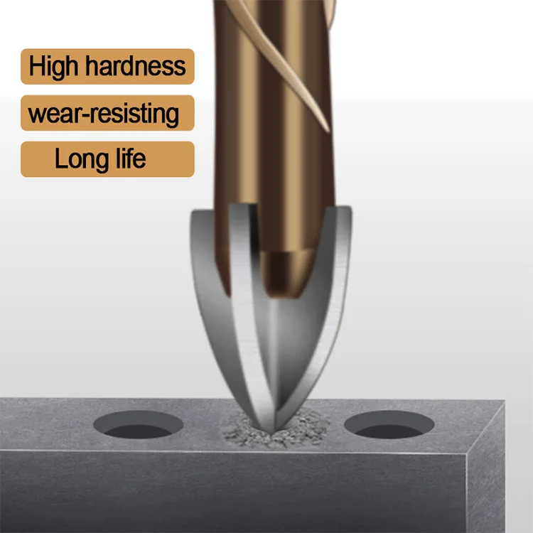 1. Обладает сильной прочностью и износостойкостью2. Сопротивление разрезу невелико, увеличивает скорость открытия, длительный срок службы3. Твердосплавная точка с покрытием промышленного класса с 4 режущими краями4. Может быть установлен в ручной дрели, электрической дрели5. Подходит для керамики, гранита, плитки, камня, дерева, пластика, бетонной стены для сверления отверстий