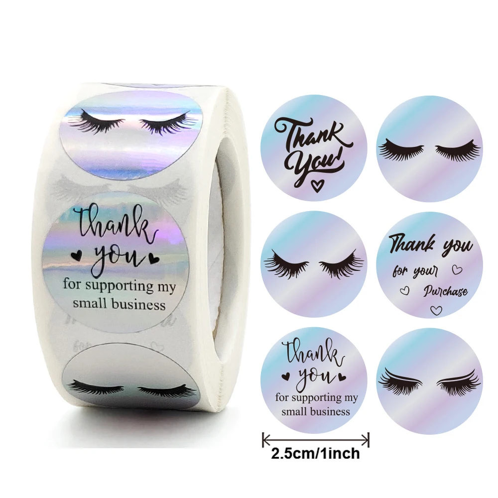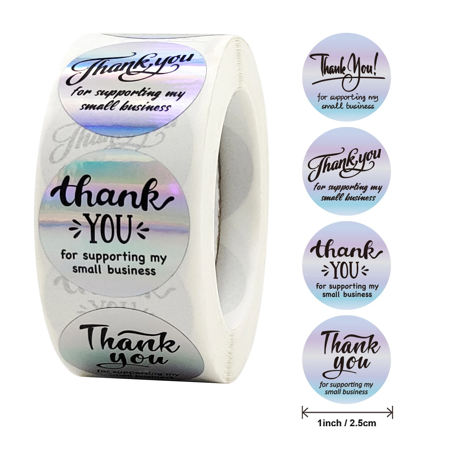 Наклейки с радужным лазером Thank You, 100-500 шт., 1 дюйм, маленькие наклейки для бутиков, товары для упаковки