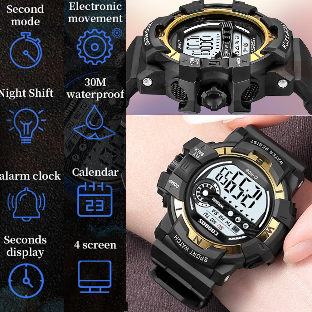 Водонепроницаемые будильник на неделю электронные часы мужские цифровые наручные часы