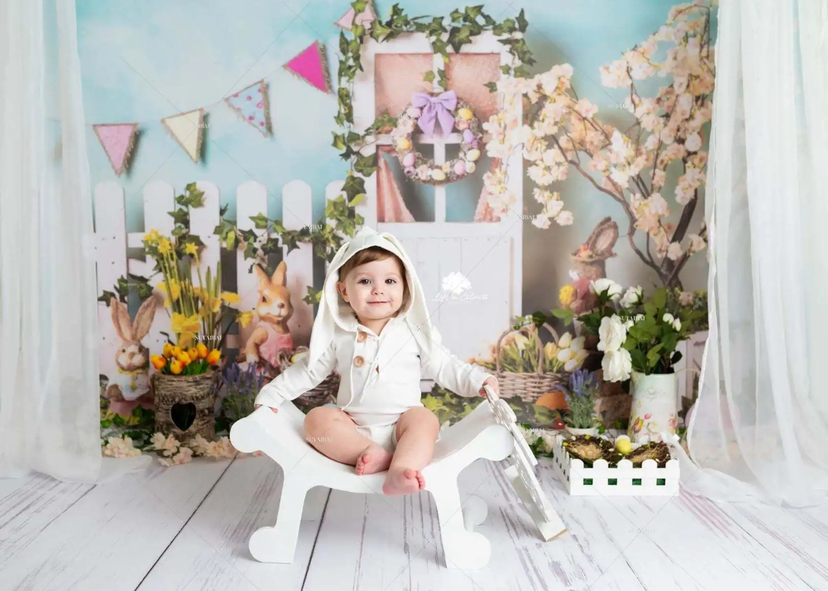 Весенние пасхальные фоны для фотографии весенние цветы кролик яйца кролик новорожденные дети портрет фото фон для фотостудии