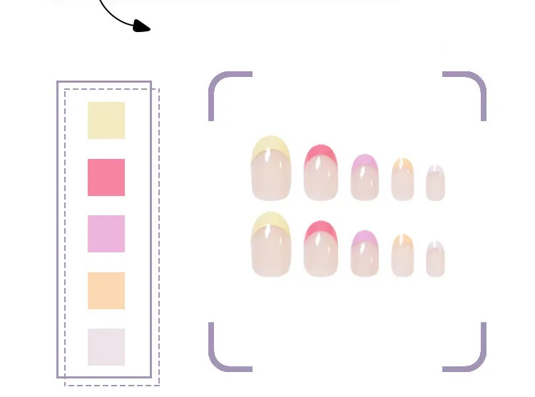 Съемные накладные ногти, радужные накладные ногти для французского маникюра, накладные ногти с полным покрытием, инструменты для маникюра, 24 шт.