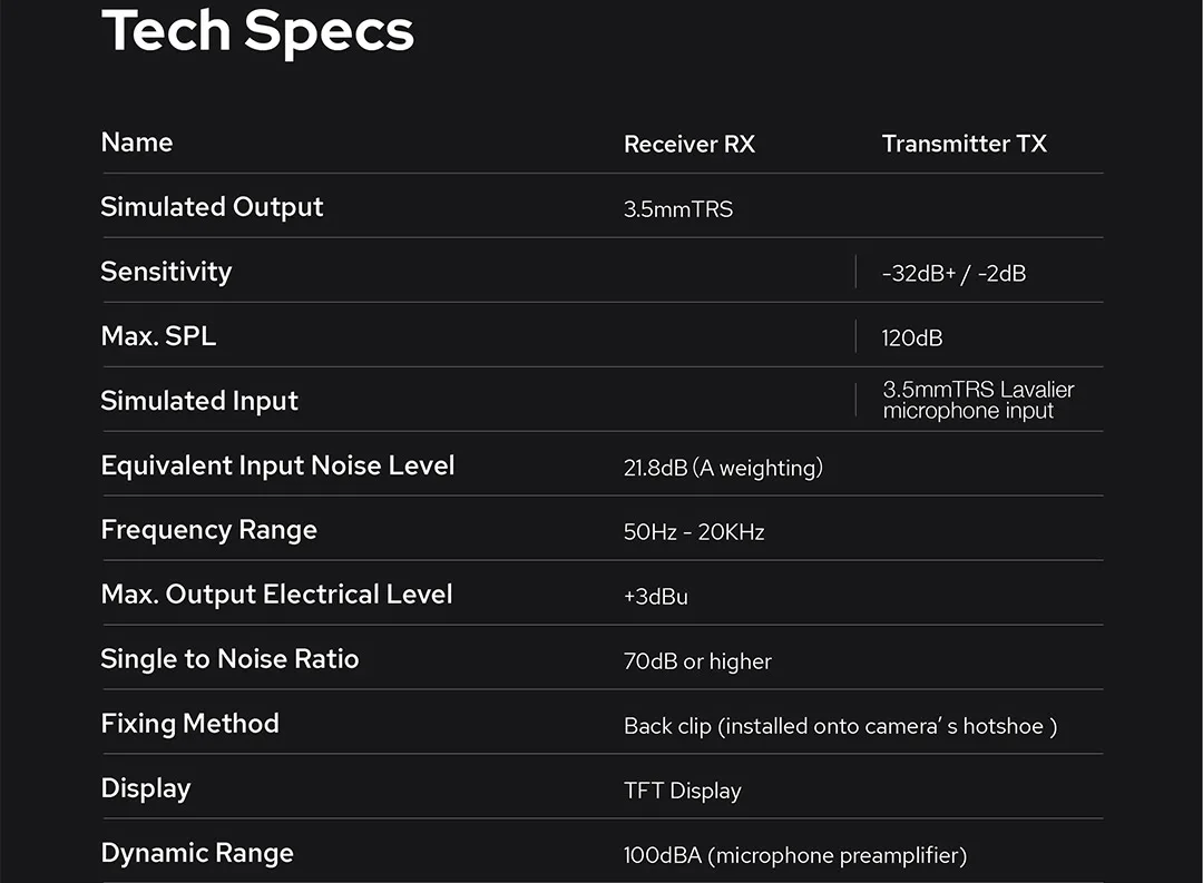 Ультра-компактныйВозьмите theGodox movelink, который очень легкий и просто помещается в карман. Каждая единица measuresin5 * 4*1,4 cmonlyto позволяют вас, потому что вы сможете держать всю систему в одной руке легко. Для любых создателей контента, это незаметный и удобный выбор, который никогда не подводит вас.Простая установка для on-the-goБыстрая настройка особенно идеально подходит для создателей на ходу. Включите питание, затем подключите и перейдите. С задней клипсой, легко скользить в горячий башмак камеры, клип на ремень камеры или ремень, или в любом другом месте. Кроме того, крепление магнитного листа к thebeltclipпоможет освободить вашу руку и изучить более гибкие способы.Создавайте свою звуковую историю легкоВстроенный всенаправленный конденсаторный микрофон-это истинное беспроводное решение для вашей аудиопродукции. Оптимизация аудиосигнала так же проста, with15-level настройки усиления для настройки при нажатии. Кроме того, он также включает в себя 1,2 mlav микрофон, который Вы сможете легко закрепить на вашей одежде.Моно/стерео режим доступенСвободно переключается между моно/стерео режимом, MoveLink может управлять любым состоянием, в котором два человека записывают одновременно. Если вам нужно решение с двумя звуковыми дорожками, чтобы обрабатывать запись каждого человека индивидуально, выберите режим стерео. В противном случае вы можете получить комбинированный звук от двух передатчиков в моно-режиме.Портативный чехол-зарядкаOfasimilar размер как смартфон, чехол идеально помещается в карман и может свободно носить с собой. Положите в него три блока, и вы можете зарядить их вместе только с одним кабелем type-c.2,4 ГГц Операционная системаЯвляются общепринятыми во всем мире, 2,4 ГГц частота bandavoidsinterference из перегруженных UHF, который гарантирует высокую производительность и на месте и в помещении. Featuringa максимум 50 метров рабочее расстояние, systemmeets большую часть вашего outdoorneeds.Eveninplaces с Bluetooth и Wi-Fi трафика, canstilltransferstable audiothanks к частотная-hopping технологии.Легко трансформирует портативный микрофонС дополнительными аксессуарами, MoveLink может evenbeconvertedto ручной микрофон. Просто вставьте передатчик в ручной адаптер ML-H с ветрозащитной пеной, и вы получите «Новый» микрофон для подкачки, интервью и многого другого.Высокая совместимостьПри включенном 3,5 мм ТРС и TRRS кабели, Godox MoveLink совместим с множеством устройств, таких как смартфоны, планшеты, камеры, recordersetc.Особенности:Автомобильная параУльтра-компактныйВстроенный микрофонДиапазон до 50 мРеальное время работы2,4 GHz цифров Беспроводной передачиЧехол для зарядки три в одномВстроенные аккумуляторные батареиЧто в коробкеMoveLink TX Transmitter2MoveLink RX Receiver1Всенаправленный петличный микрофон (1,2 м) 2Кабель USB Type-C E3Ветровое стекло Cap2Магнитный чехол 33,5 мм TRS to TRS Audio Cable13,5 мм TRS до TRRS кабель для Smartphone1Технические характеристикиНазваниеПриемник RXПередатчик TXИмитация выходного сигнала3,5 mmTRSЧувствительность-32 дБ +/-2 дБМакс. СПЛ120 дБИмитация входного сигнала3,5 mmTRS петличный микрофон входЭквивалентный входной уровень шума21,8 дБ (Взвешивание)Частотный диапазон50 Гц-20 кГцМакс. Выходной электрический уровень+ 3dBuСоотношение шума и шума70 дБ или вышеМетод фиксацииЗадний зажим (устанавливается на горячий башмак камеры)ДисплейTFT дисплейДинамический диапазон100dBA (усилитель микрофона)Рабочий диапазон50 м (без укрытия)ПитаниеВстроенный литиевый а