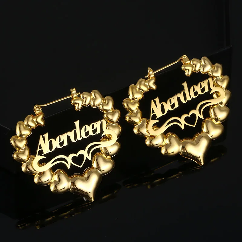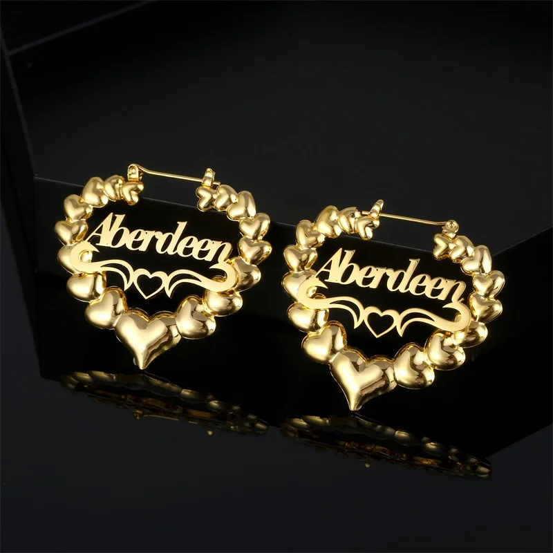 Именные серьги, персонализированные серьги из нержавеющей стали в б...