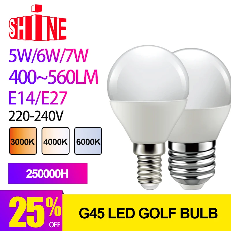 Светодиодная лампа для гольфа G45 3 Вт 5 Вт 6 Вт 7 Вт 3000 К 4000 к 6000 К E14 E27 220 В светильник украшения дома