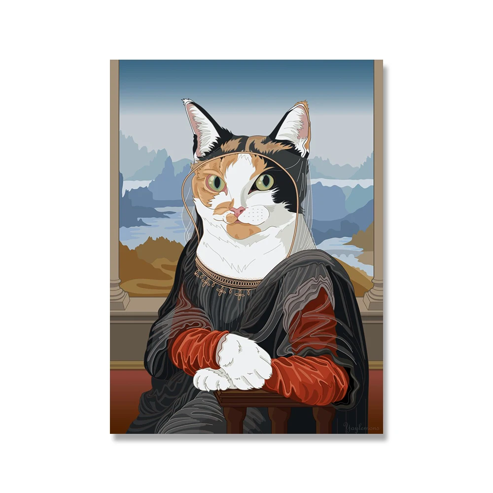 Мультяшный кот леди холст постер Monalisa смешной абстрактный принт...