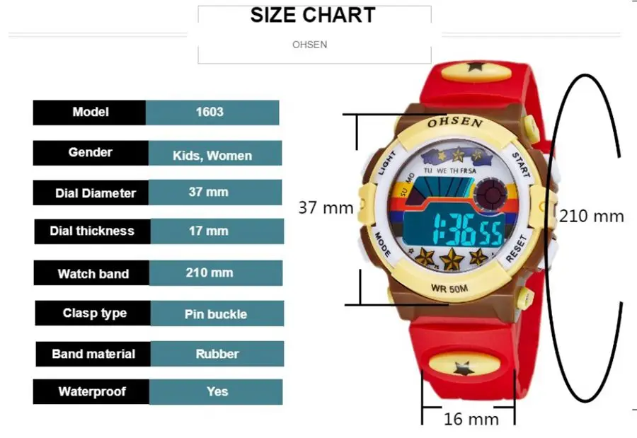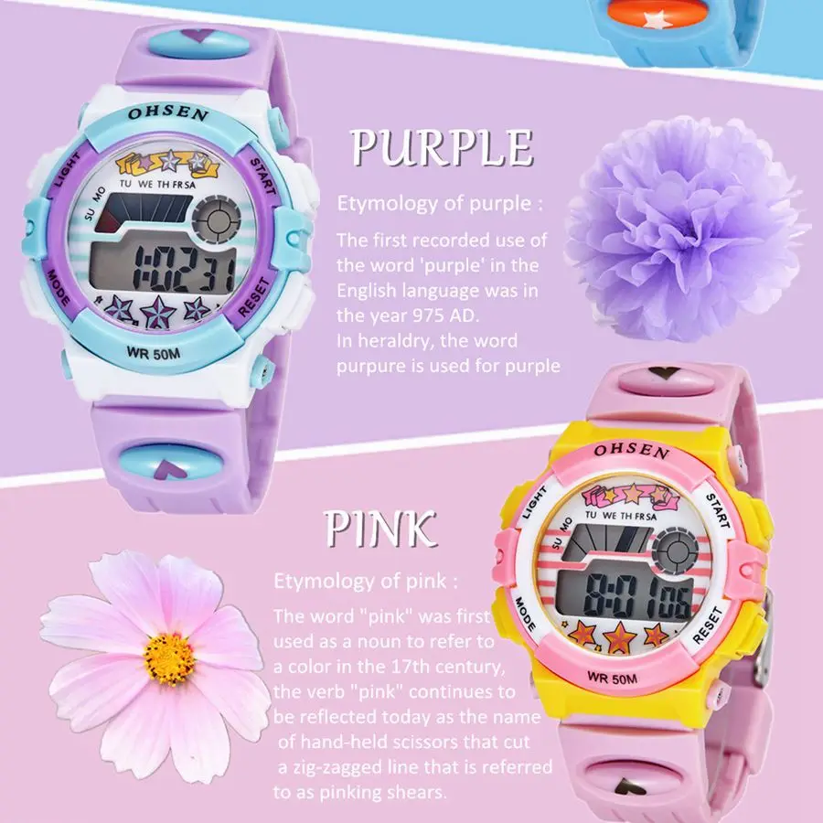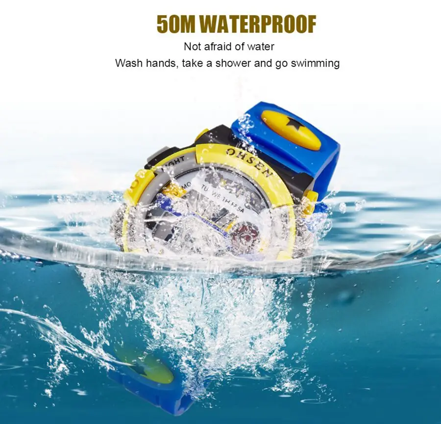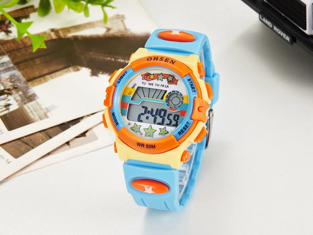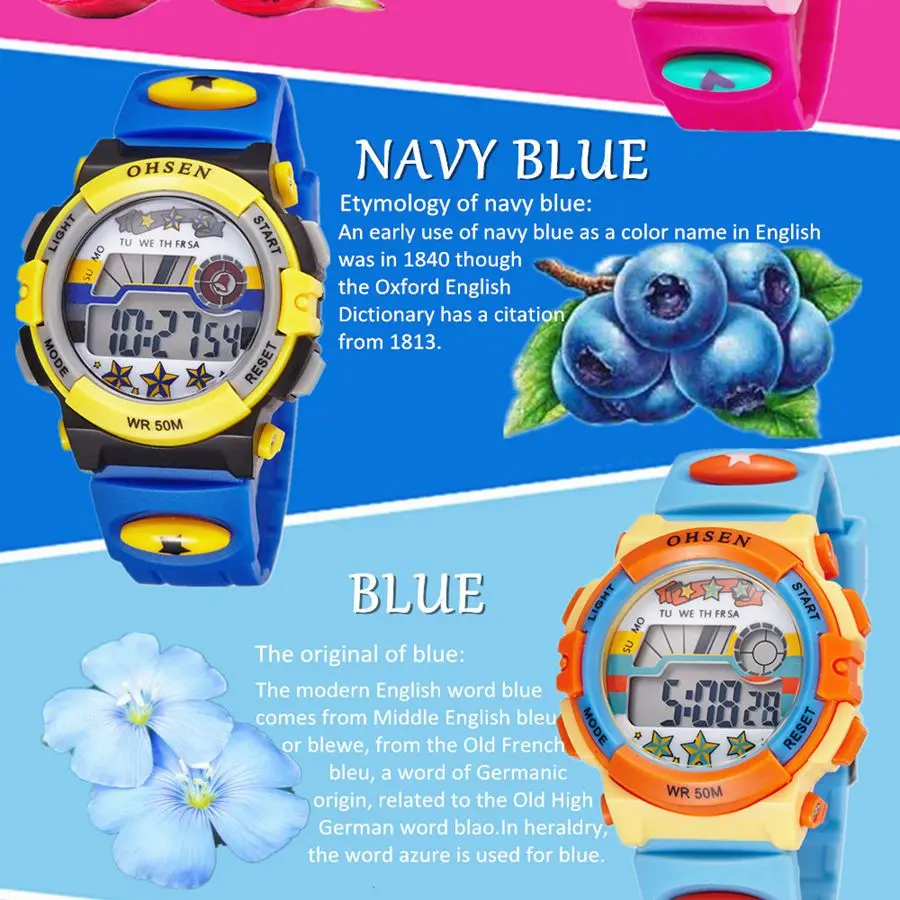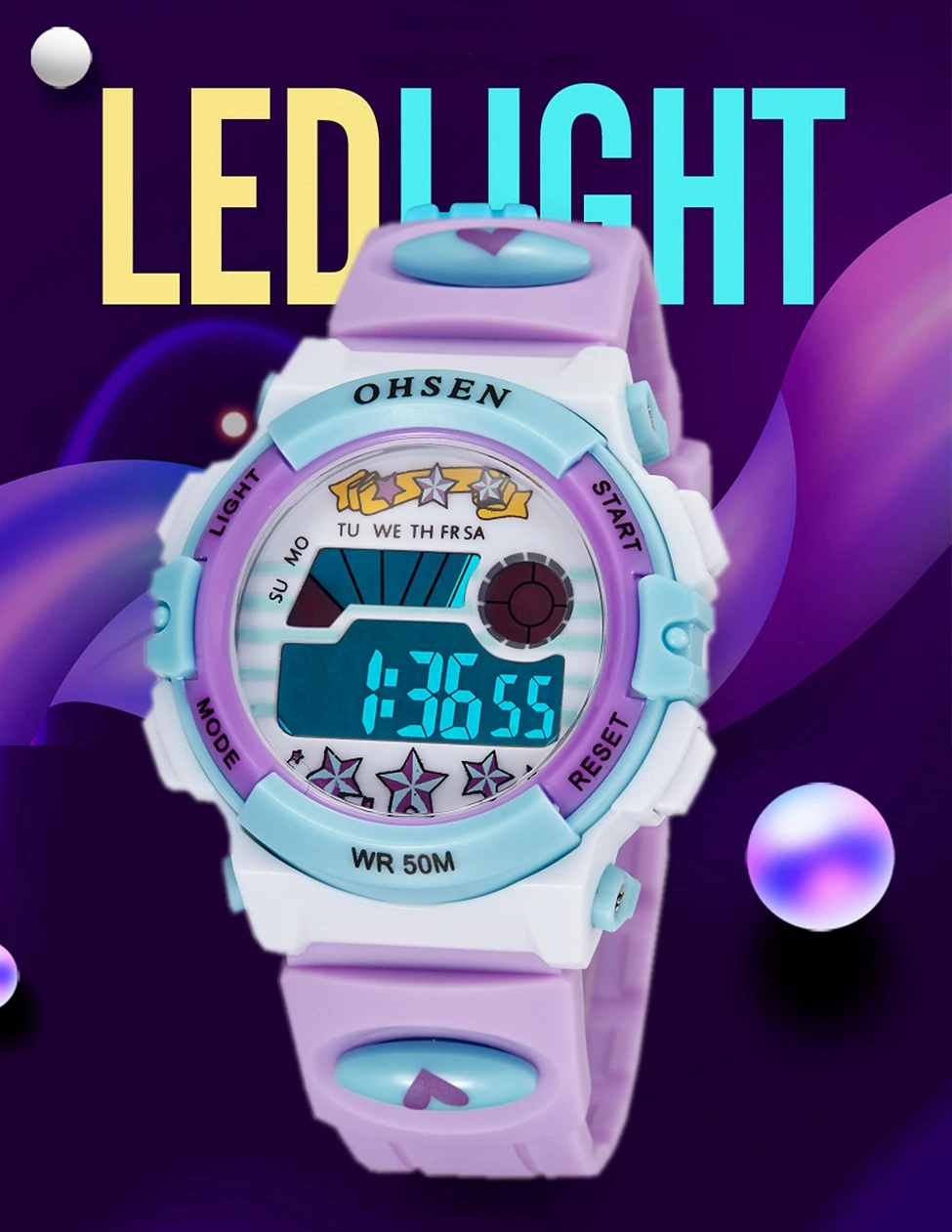 OHSEN детские спортивные часы 50 м водонепроницаемые красные Мультяшные цифровые наручные часы Секундомер электронные светодиодные детские часы для мальчиков и девочек