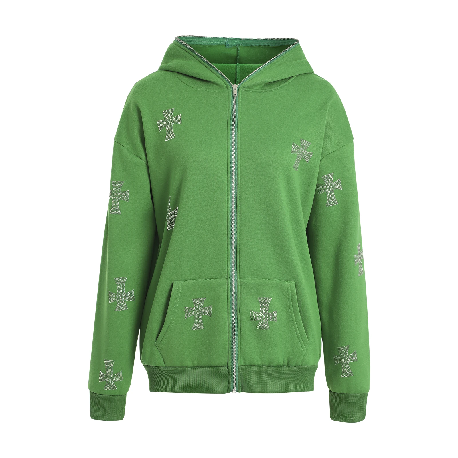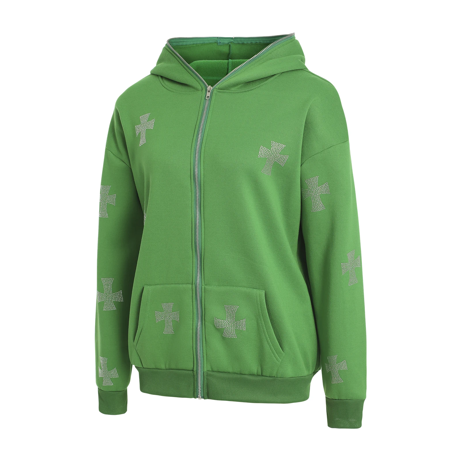Женский Повседневный свитер с капюшоном, толстовка с длинным рукавом и карманами для взрослых Стразы