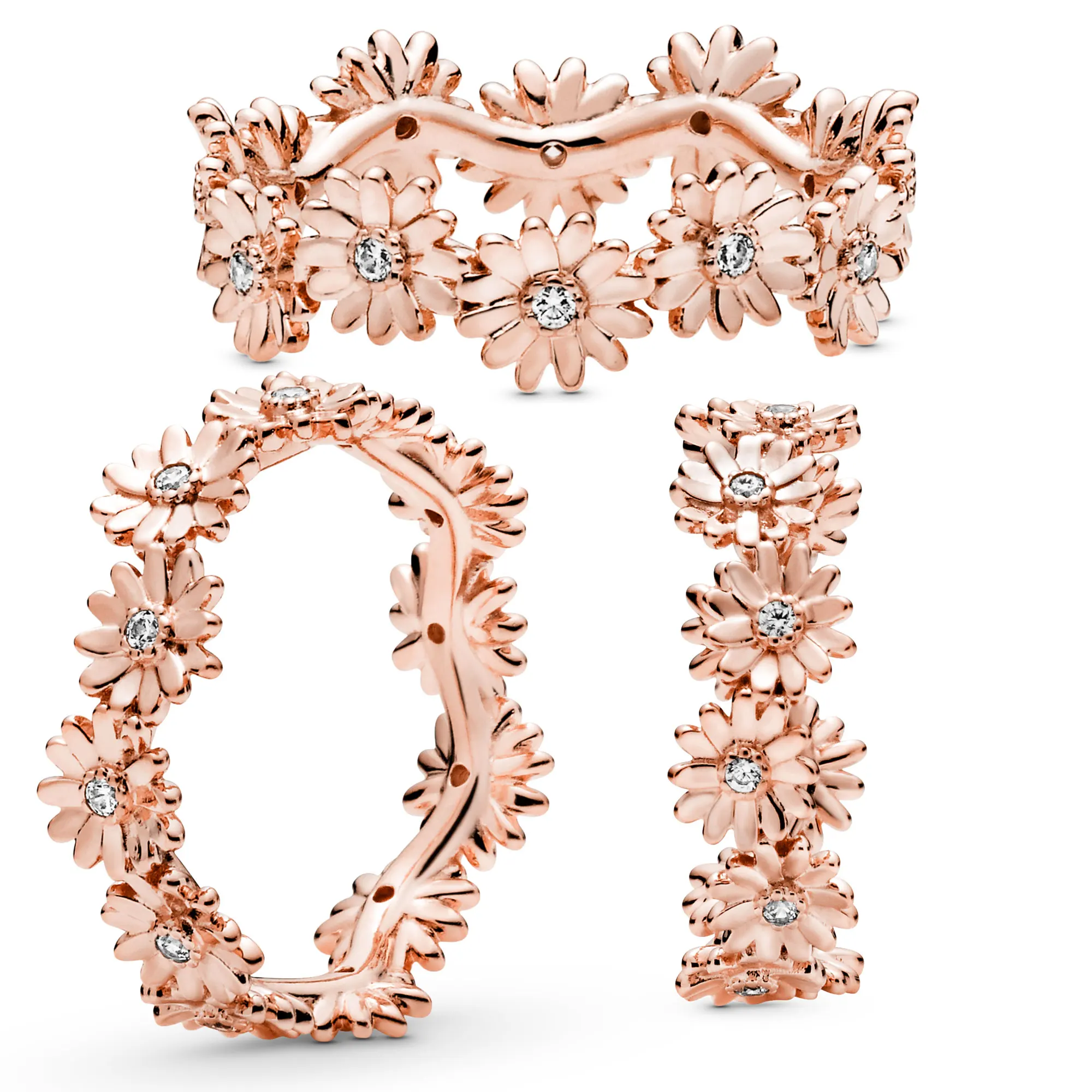 Женское кольцо с цветком маргаритки, оригинальное фирменное кольцо из серебра 925 пробы с бесконечным сердцем, 925