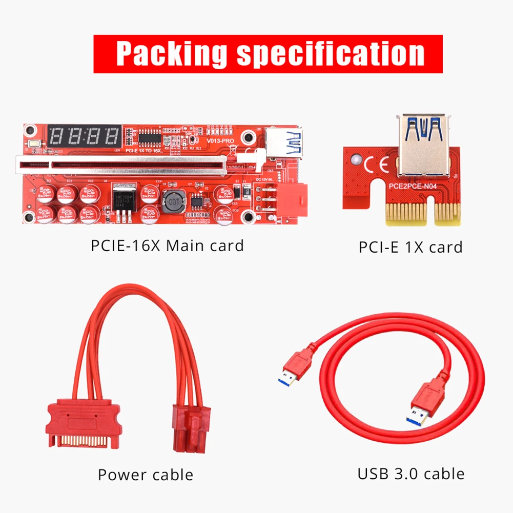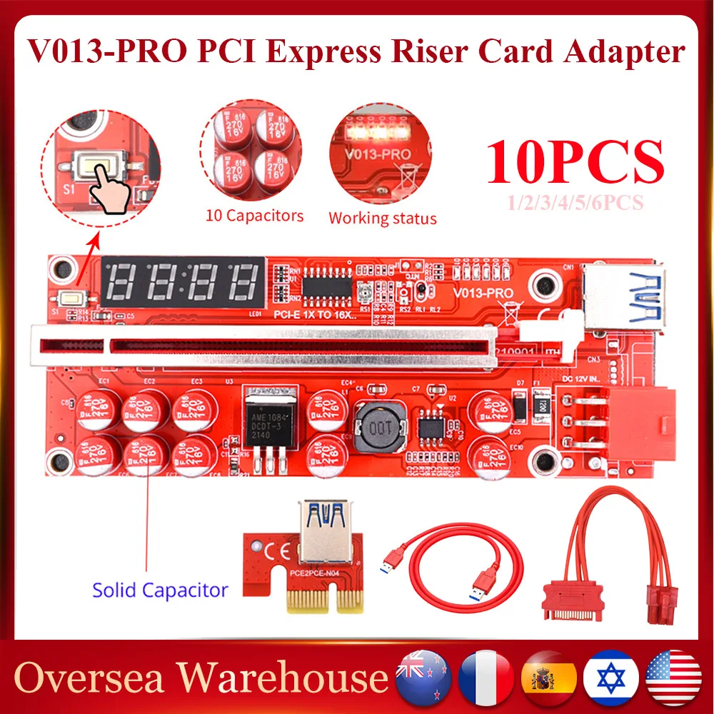 Адаптер PCIE Riser V013 Pro PCI-E, 1-10 шт., кабель PCI Express x1 x16 USB 3,0, 10 конденсаторов для майнинга видеокарт