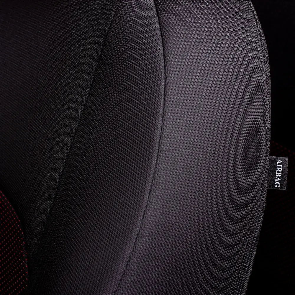 Чехлы модельные для Nissan Primera -3, 01.2002-11.2008, P12, Седан 4 дв. ДУБЛИН " Жаккард" цвет - Чёрный, доп. цвет - Красный.Nissan Primera-3 кузов P12 Год выпуска янв. 2002-ноя. 2008Седан 4 двериСпинка заднего ряда складывается в пропорции 60/40Руль левыйКоличество мест:5 1-й ряд.Спинки переднего ряда 2шт, имеется разрывной шов для подушек безопасности и тех. молния к двери (необходима при установке).Сиденья переднего ряда 2шт, Подголовники: 2шт, прямые.Чехол подлокотника: нет. 2-й ряд.Спинки заднего ряда в пропорции 60/40 2шт, имеется тех. молния под подлокотник и тех. молния к середине (необходима при установке).Сиденье заднего ряда цельное 1шт, имеются тех. отверстия под ISOFIX.Подголовники: 3шт, Г-образные.Чехол подлокотника: 1шт.Отдельный бок: 2шт.Всего элементов: 15шт.