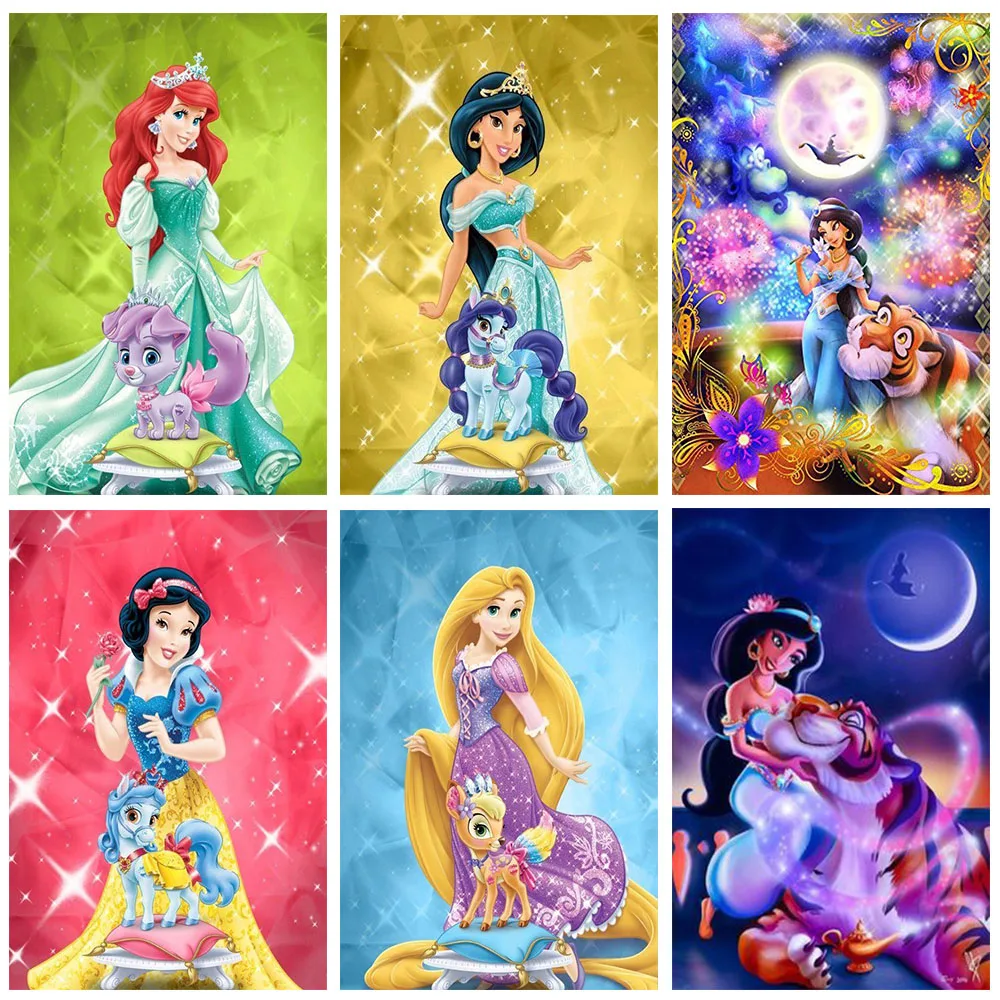Принцесса Диснея с дворцовыми домашними животными, трюфели Ариэль матеи Рапунцель, вышивка крестиком, мозаика квадратная, круглая, алмазная вышивка, домашний декор