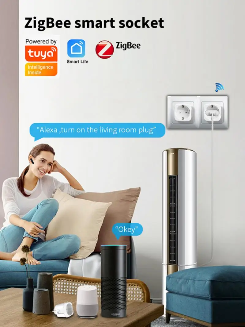 Умная розетка Tuya ZigBee, умная розетка с таймером, с вилкой Стандарта EU, 20 А, работает с Alexa, Amazon, Google