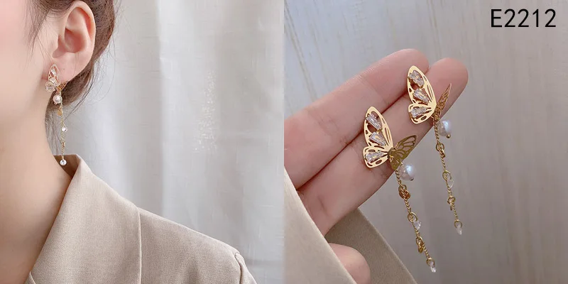 Style2022 New Trendy Long Butterfly Clip Earrings