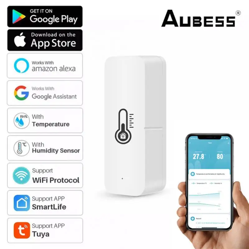 Беспроводной Wi-Fi датчик влажности и температуры AUBESS с поддержкой Alexa и Google Assistant