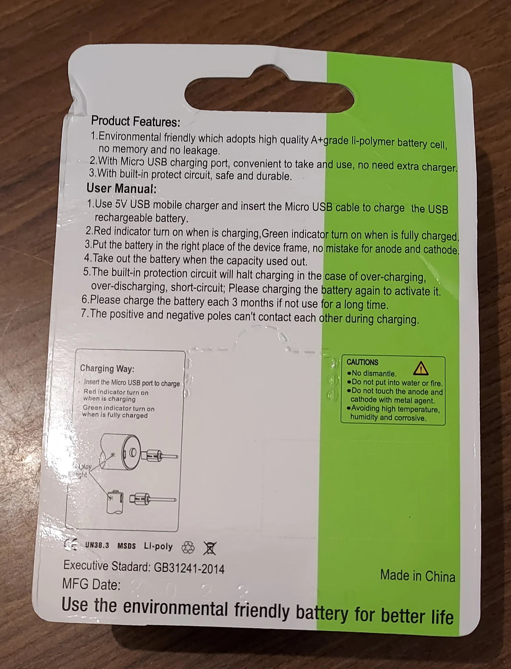 Перезаряжаемая батарея ZNTER 1,5 В МВт-ч, микро-USB Батарея D Lipo ...