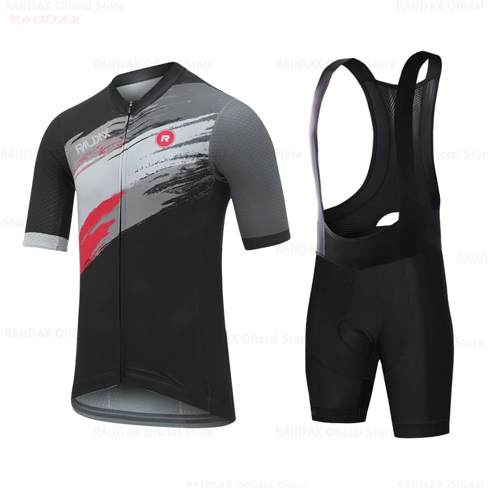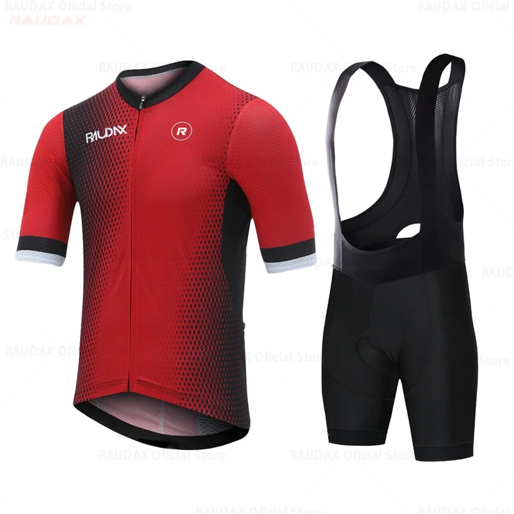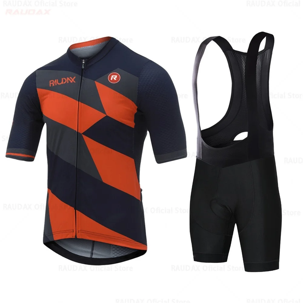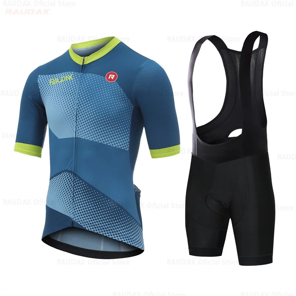 Мужская велосипедная одежда, новинка 2022 года, командная веломайка RAUDAX, летняя одежда с коротким рукавом 19D, комплект брюк с нагрудником, дышащая одежда для горного велосипеда