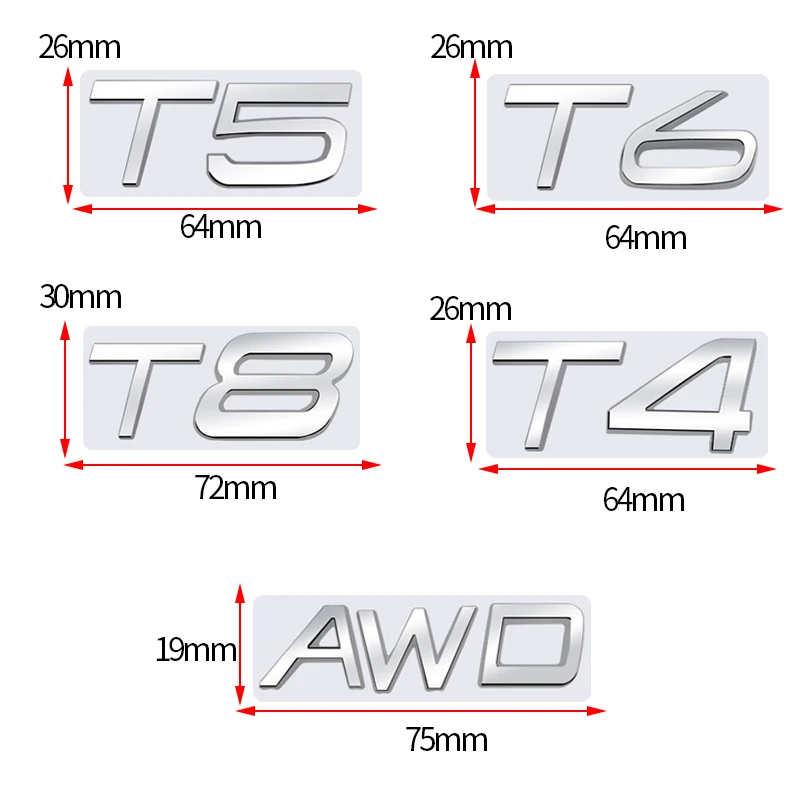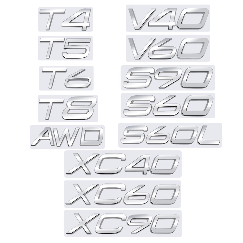 Хромированные серебристые металлические наклейки, эмблема переднего и заднего багажника для Volvo T4 T5 T6 T8 AWD V40 V60 S60 S90 S60L XC40 XC60 XC90