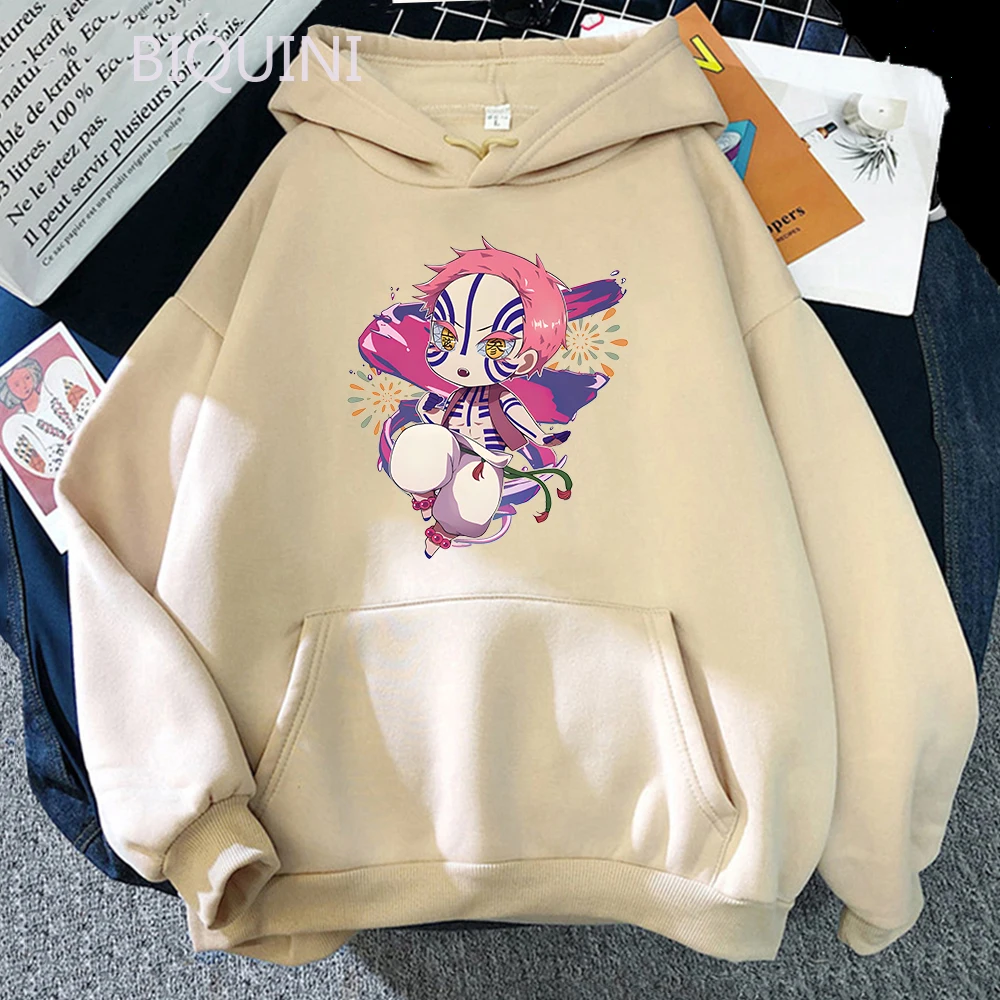 Толстовка с капюшоном, рассекающий демонов, Akaza, женские толстовки с рисунком из аниме, Зимние флисовые толстовки с капюшоном Kimetsu No Yaiba, костюмы для косплея
