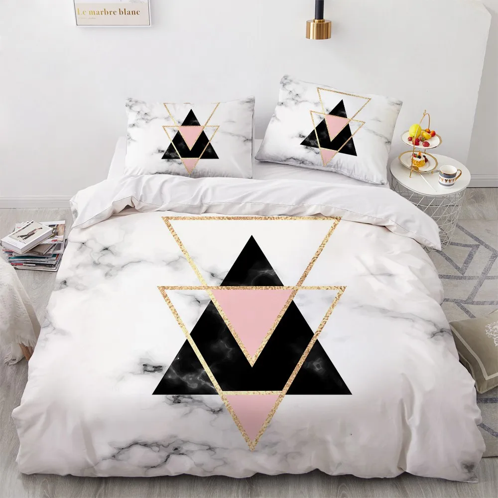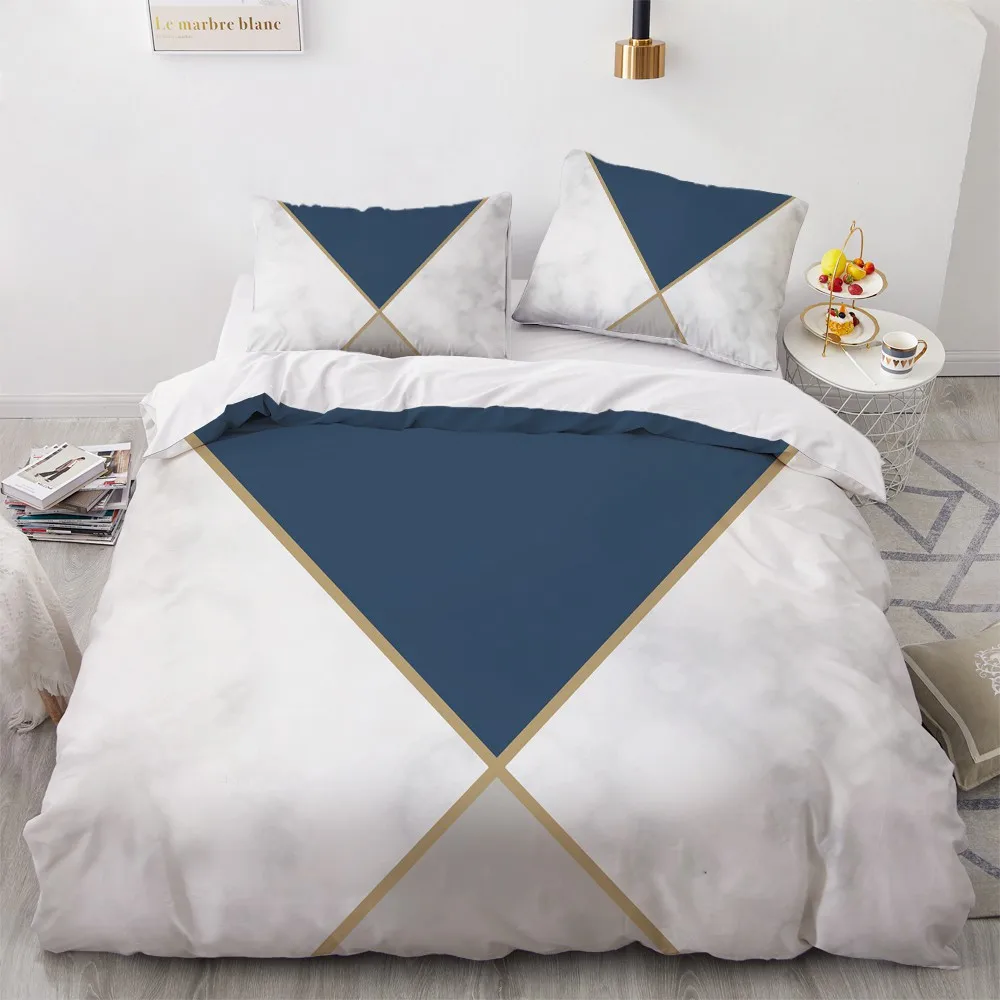 Комплект постельного белья с геометрическим мрамором, Роскошные роскошные наволочки с золотыми линиями, мягкий комплект постельного белья для двуспальной кровати