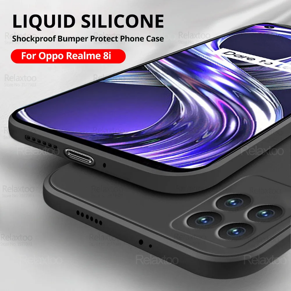 Квадратный жидкий силиконовый чехол для Oppo Realme 8i realmi Realmy 8 i i8 RMX315 6,6 "защитный бампер для камеры, чехол для телефона, чехол