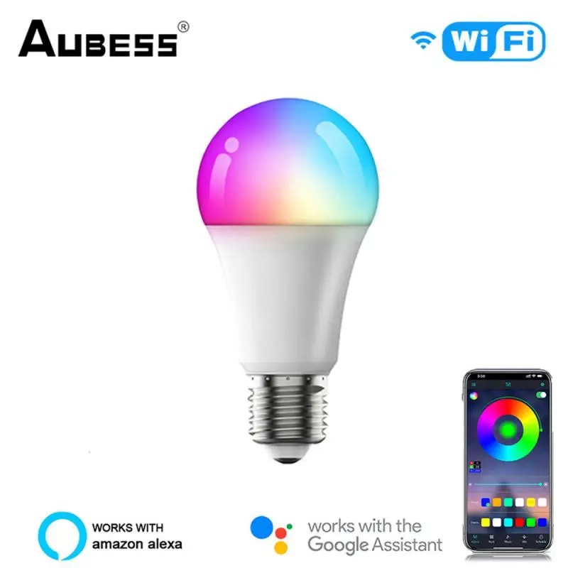 Умная Светодиодная лампа E27 B22 с Wi-Fi, лампа с изменением цвета, с голосовым управлением и дистанционным управлением через приложение Alexa Google Home Assistant
