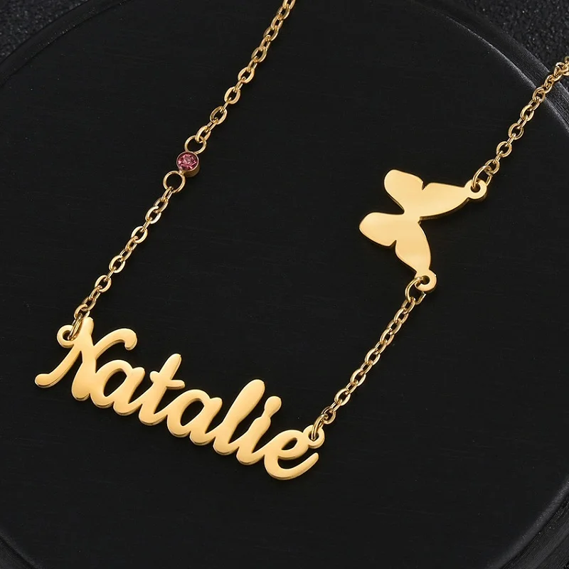 Модное ожерелье с именем персонализированное ювелирное изделие из нержавеющей стали фианитовое Сердце Бабочка для женщин подарок на день Святого Валентина