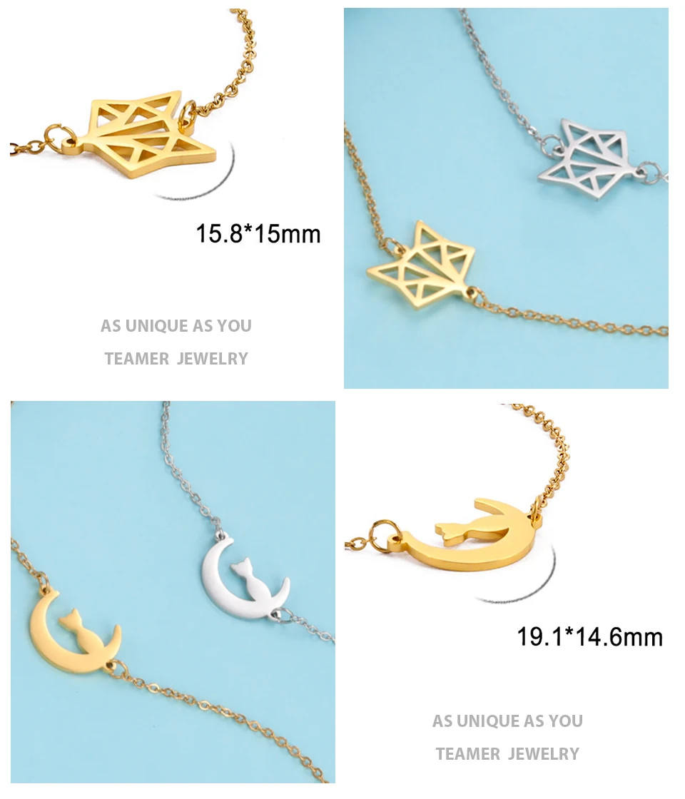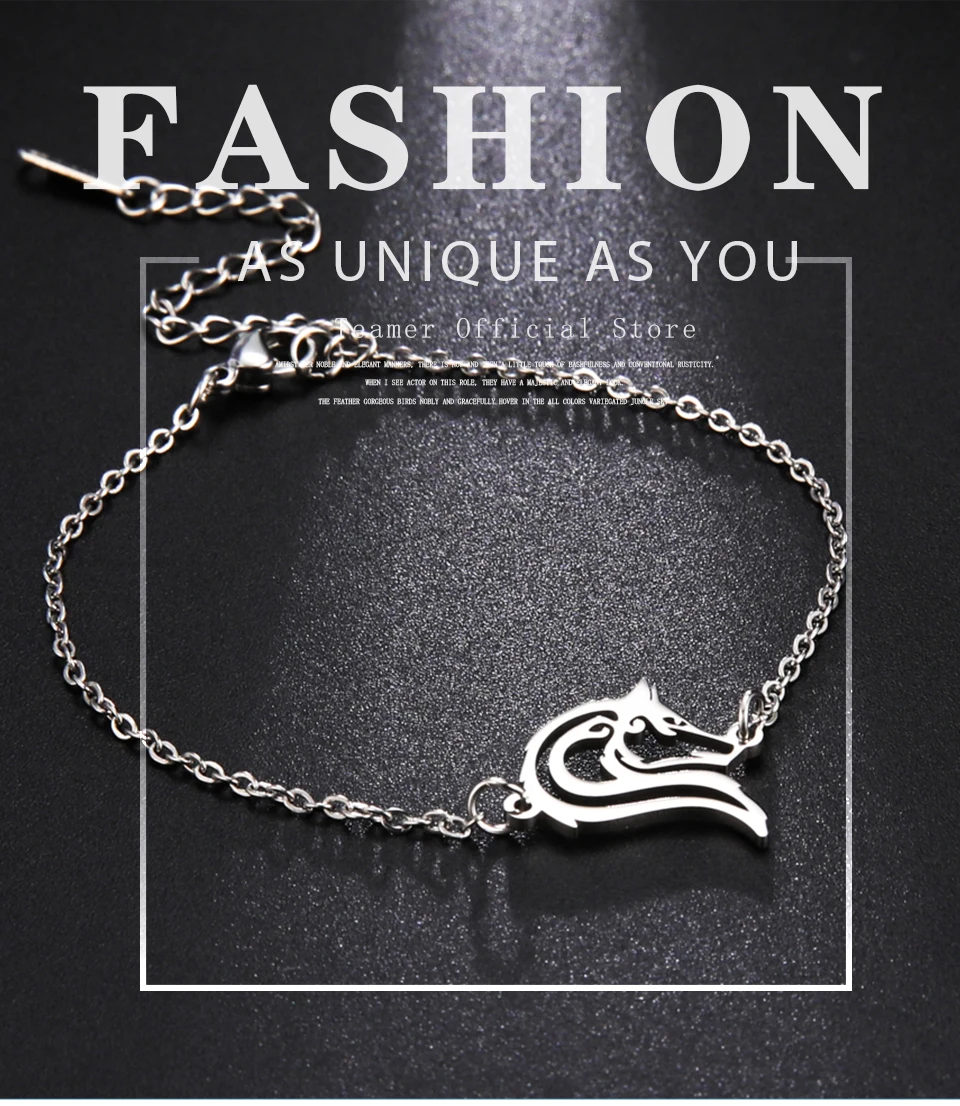 Teamer Браслет с волком викингов для женщин, звено цепи из нержавеющей стали, животное, лиса, кошка, лапа, единорог, браслеты с подвесками, ювелирные изделия на запястье, подарок