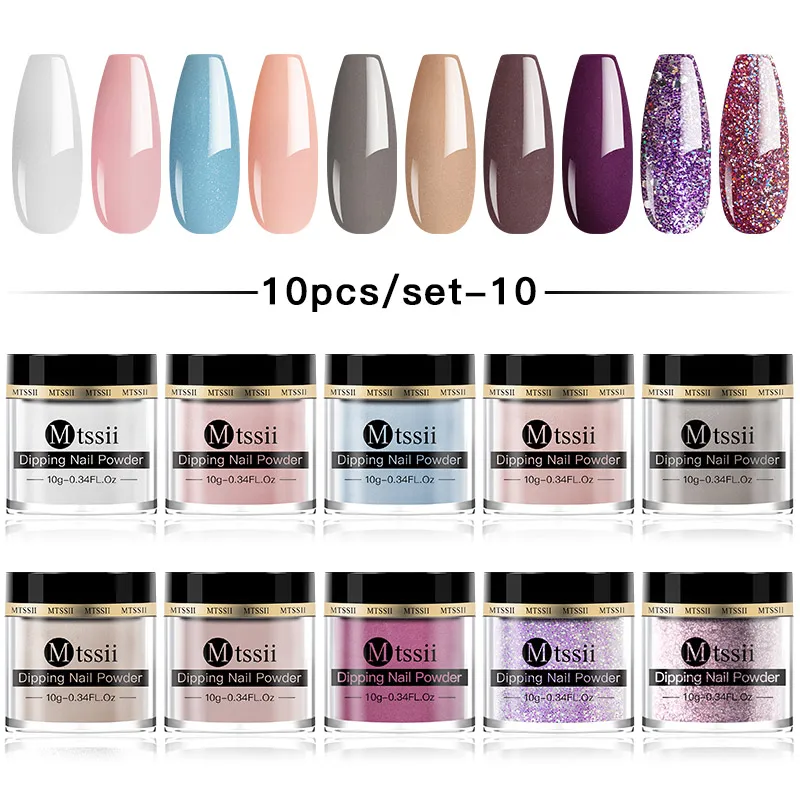 Mtssii 10 шт. набор пудры для ногтей, натуральный сухой блеск для ногтей, хромированный набор для украшения ногтей без лампы, сухая подача пудры