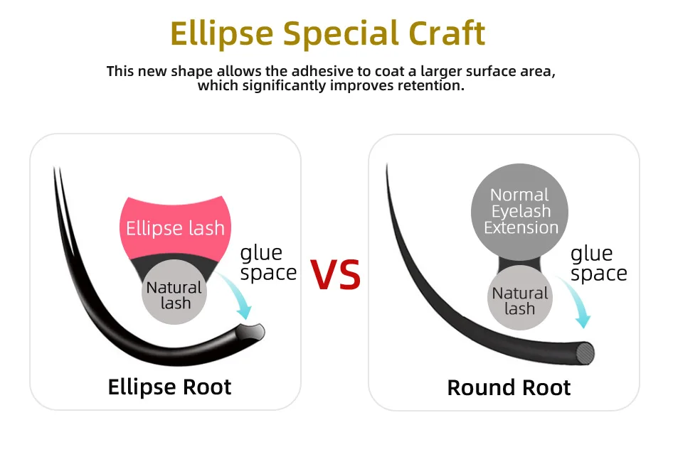 Плоская форма эллипса может увеличить область контакта клея, чтобы сделать нанесение плотно. Есть ли у вас клиент, который не был доволен толстыми натуральными ресницами, но любит толстый классический вид? Эллиптические ресницы идеально подходят для них!Так же, как и 0,15 регулярные ресниц!