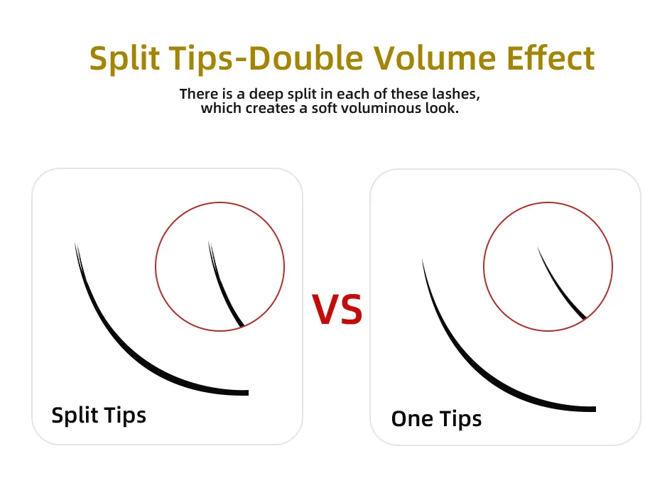 Плоское основание в форме эллипса также заполняет и корректирует внешний вид промежутков между естественными ресницами. Двойные кончики ресниц делают 3D-эффект более плотным и естественным.